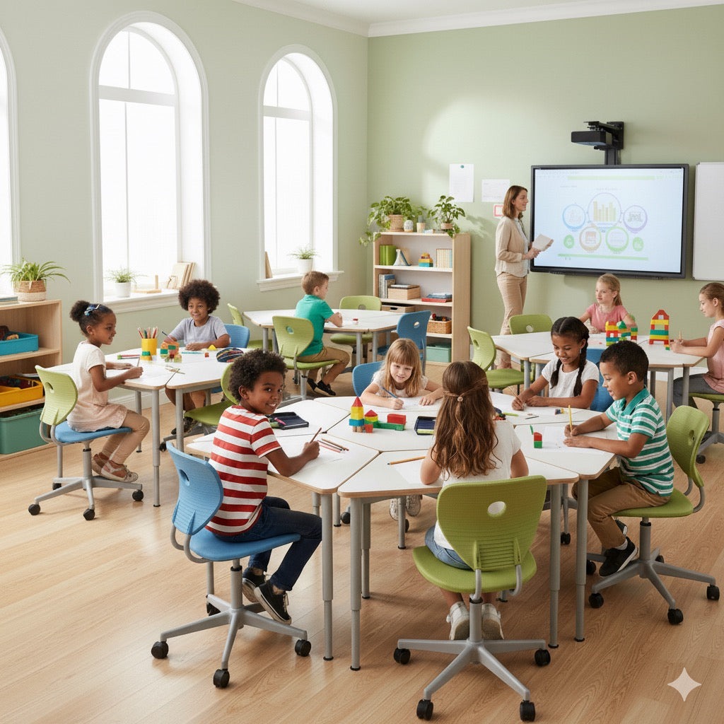Hemos diseñado mobiliario escolar ergonómico y flexible que no solo se adapta al cuerpo, sino también a la mente y al ritmo de aprendizaje único de cada estudiante.